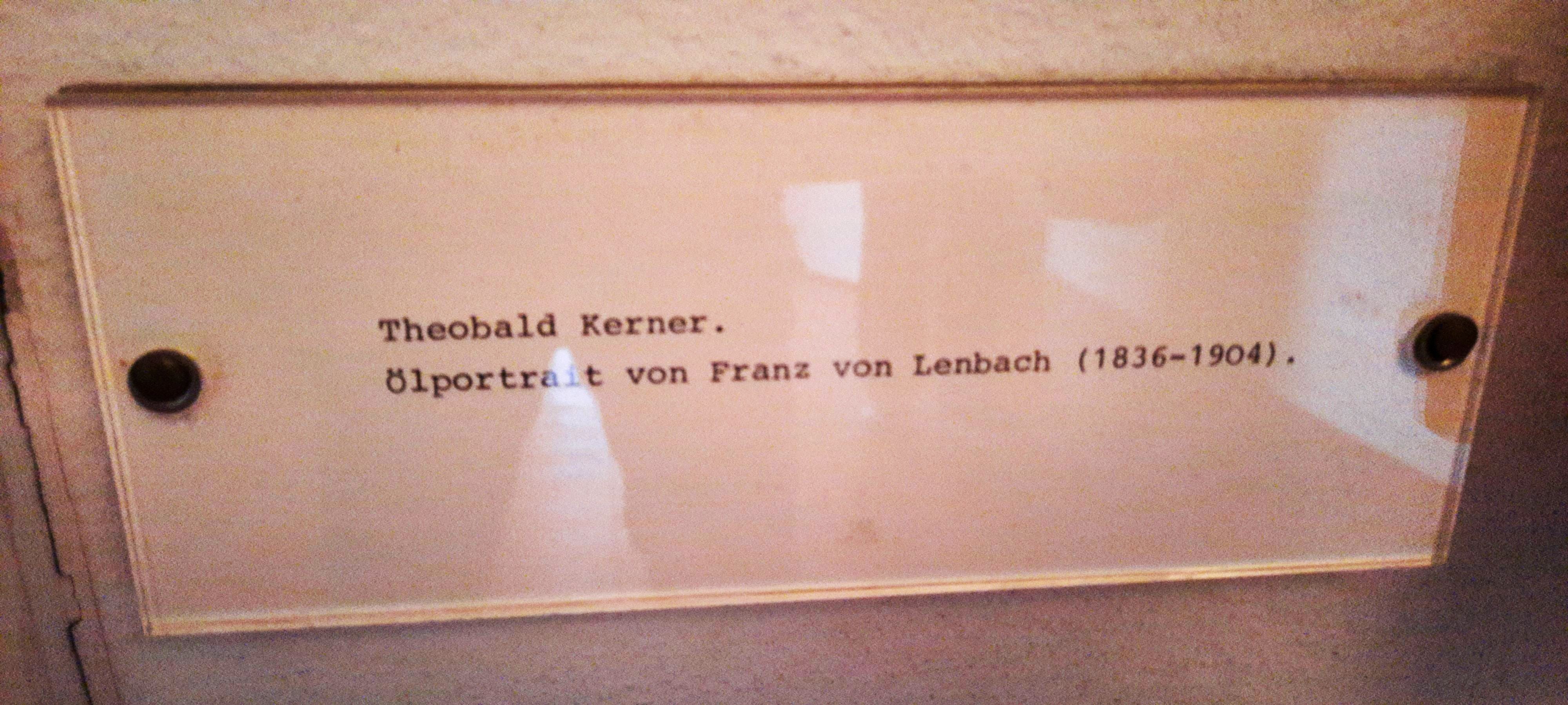 This oil-on-canvas portrait of Theobald Kerner can be seen in the home-museum Kernerhaus in Weinsberg. It was painted by Franz von Lenbach.