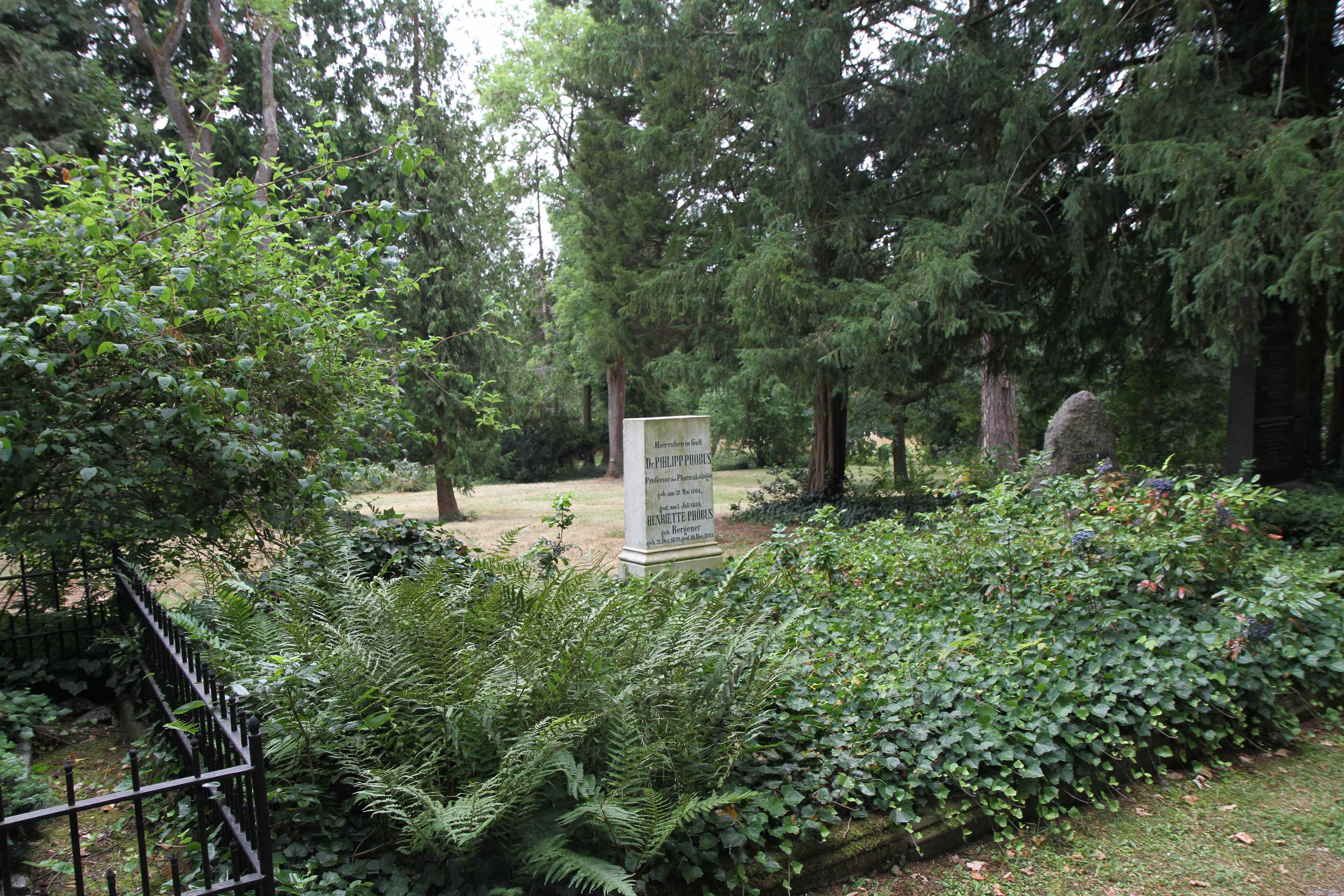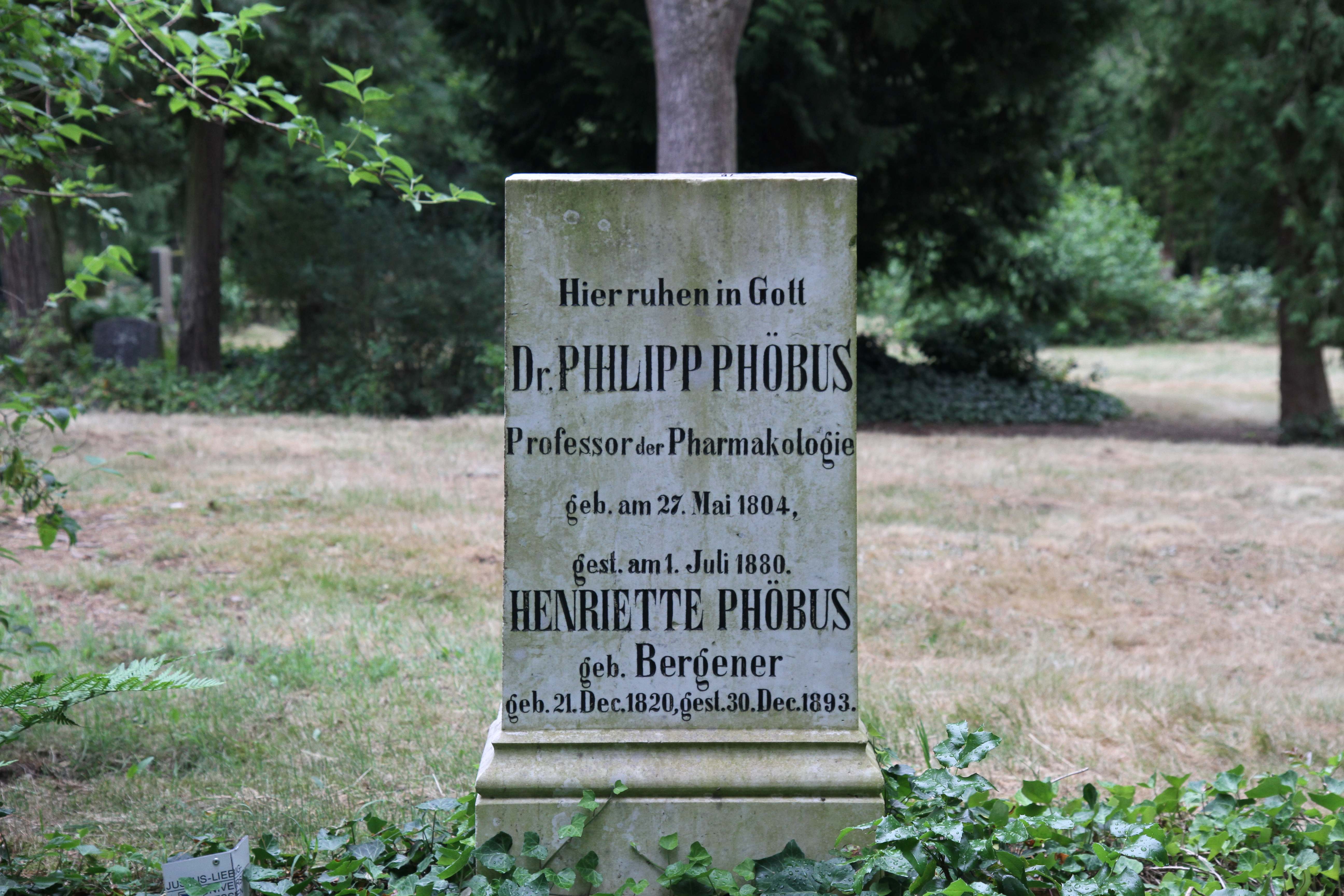 The simple tomb of Philipp Phoebus can be found in the Alter Friedhof (Old Cemetery) in Giessen (Licher Straße 29).