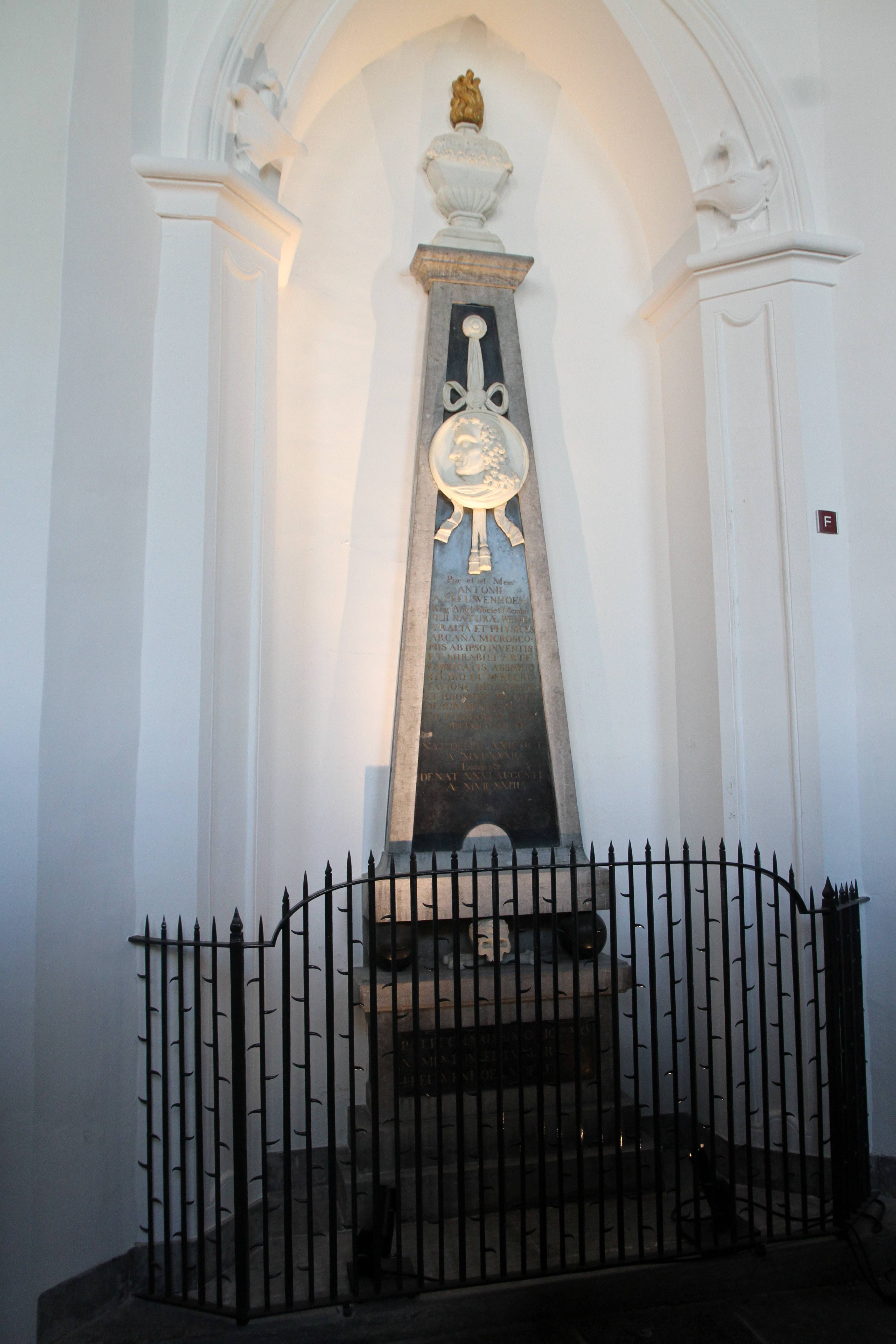 In 1686, Leeuwenhoek bought two graves in the northwest section of the Oude Kerk. Almost four decades later, he was buried in one of them, but his body didn’t stay there very long before it was moved. Leeuwenhoek was buried beside his wife Cornelia in August 1723. However, his daughter Maria gave the money for the burial niche set into the tower wall in 1739.
