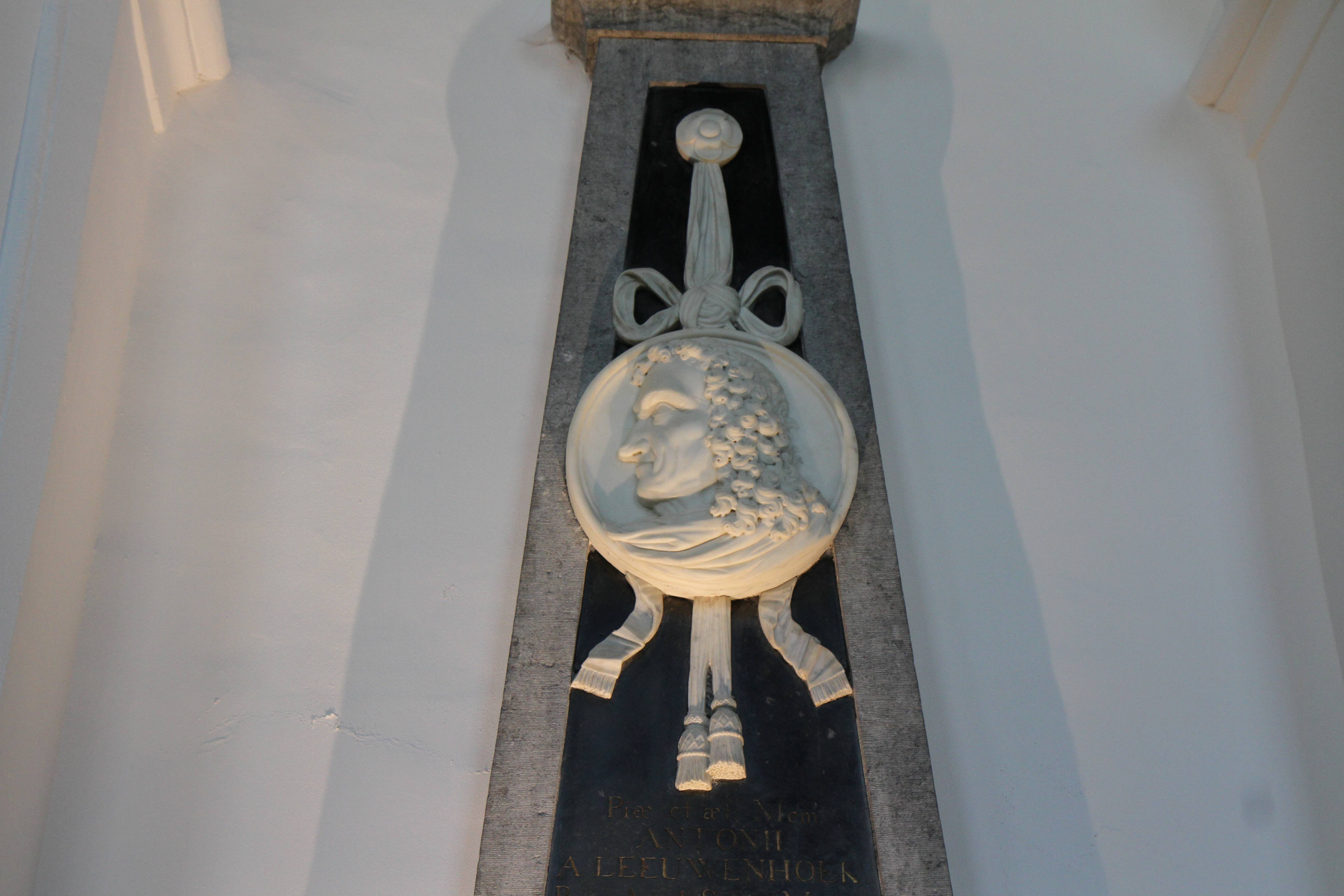 The funeral monument of Antonie van Leeuwenhoek can be admired inside the Oude Kerk of Delft.