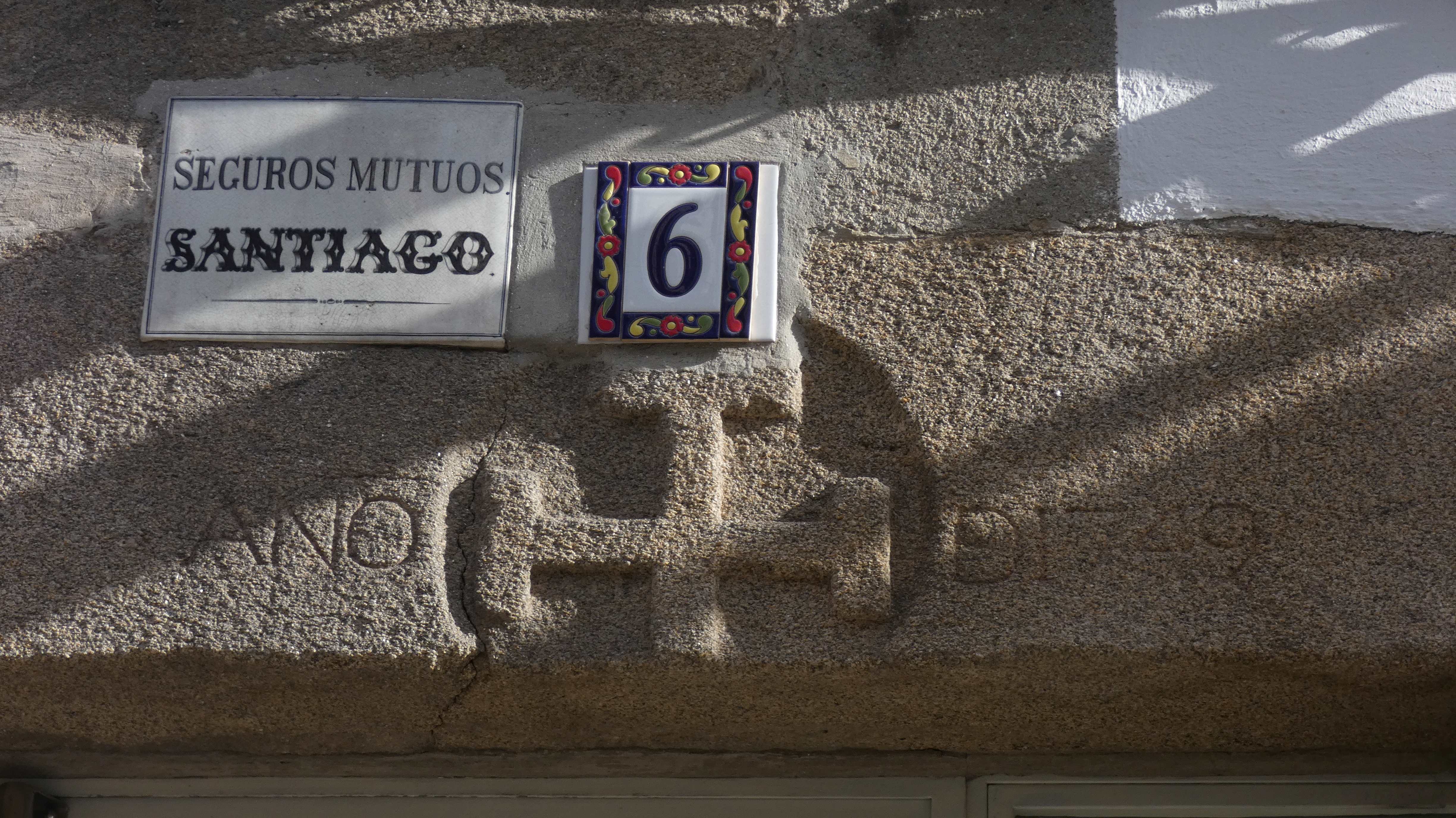 A Jerusalem cross can be seen on the house at number 6 on Rúa San Francisco. The year in which the mark was carved is also indicated: “ANO DE 1749”.