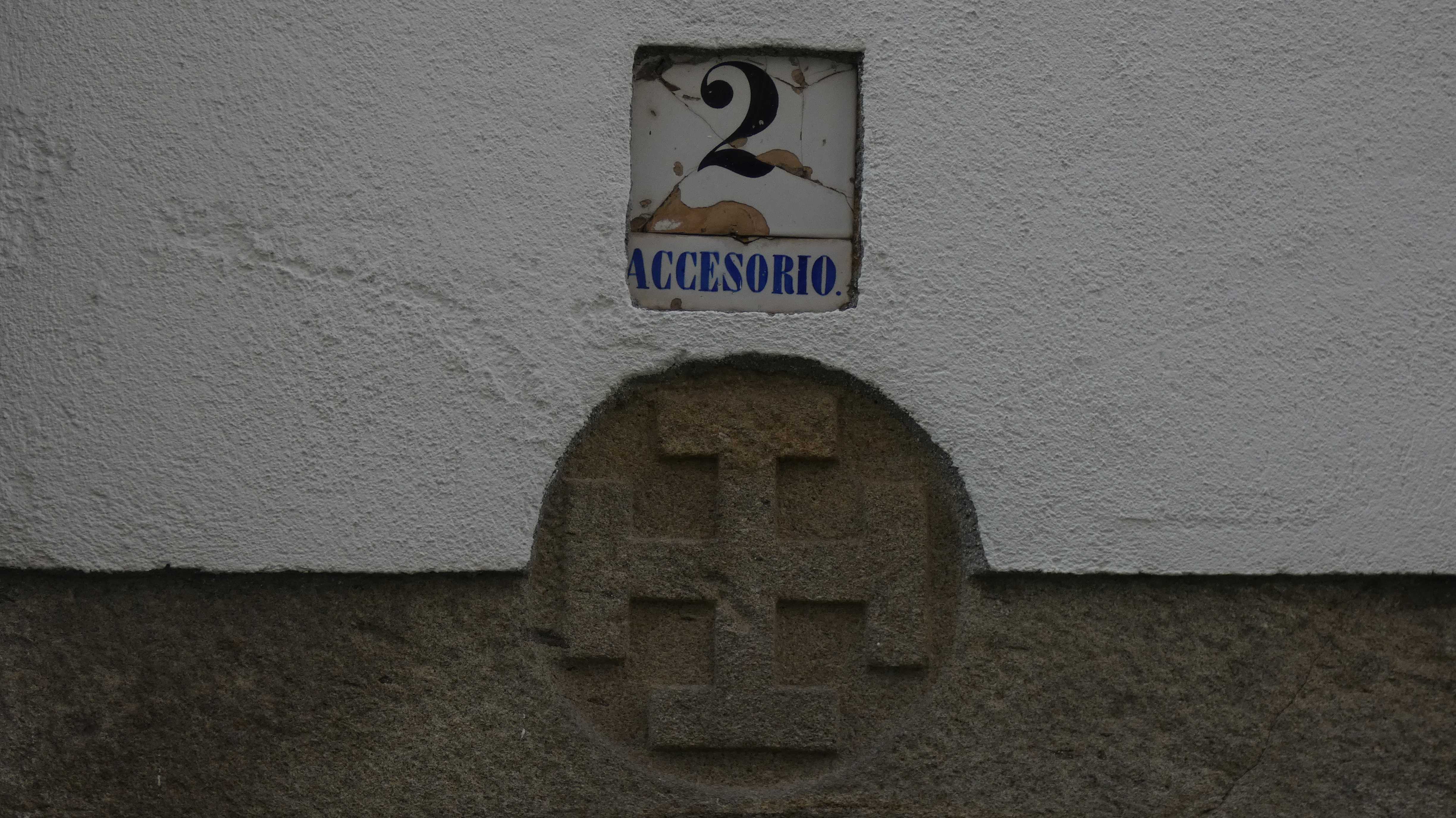 Cross on the house number 2 on Travesía entre Dúas Portas.
