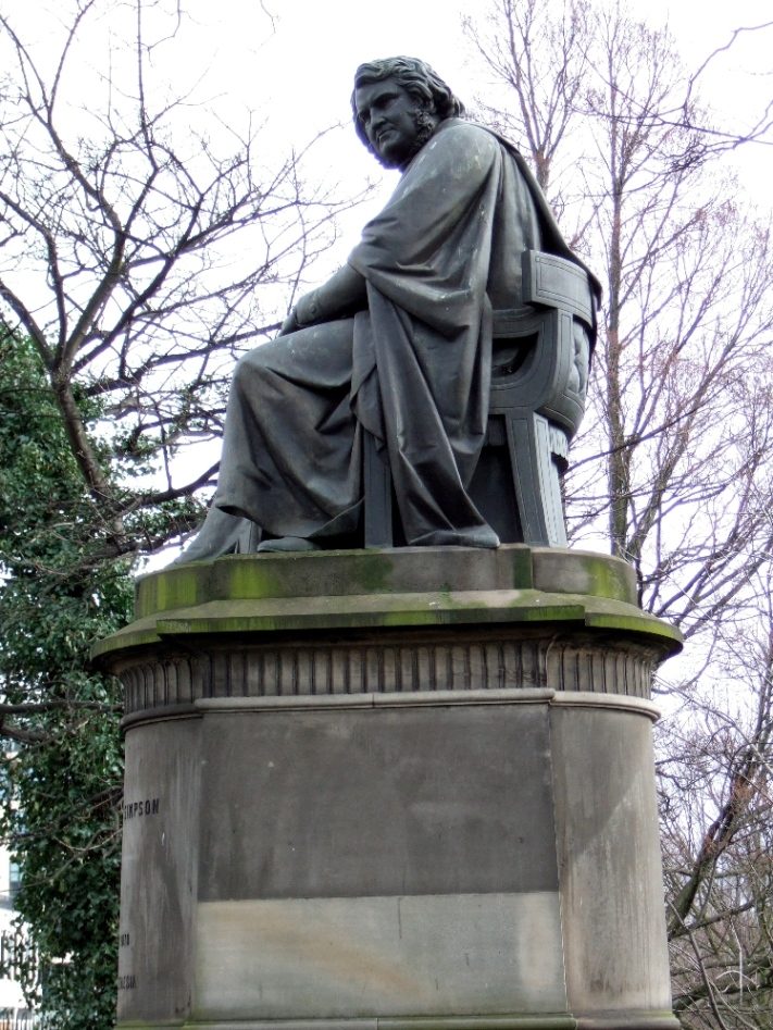This big bronze statue of James Young Simpson has been erected in the Princes Street Gardens at the west end of Princes Street, near St. John’s Church, in Edinburgh. On the basament, an english inscription reads as follows: “SIR JAMES YOUNG SIMPSON / BARONET / M.D. D.C.L. / BORN 1811 DIED 1870 / PIONEER OF ANAESTHESIA”.